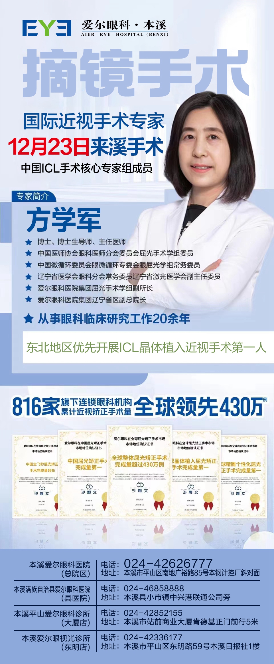 【喜迎雙十二 摘鏡狂歡月 抽獎送不停】近視手術(shù)國際大咖方學(xué)軍院長12月23日親臨本溪愛爾