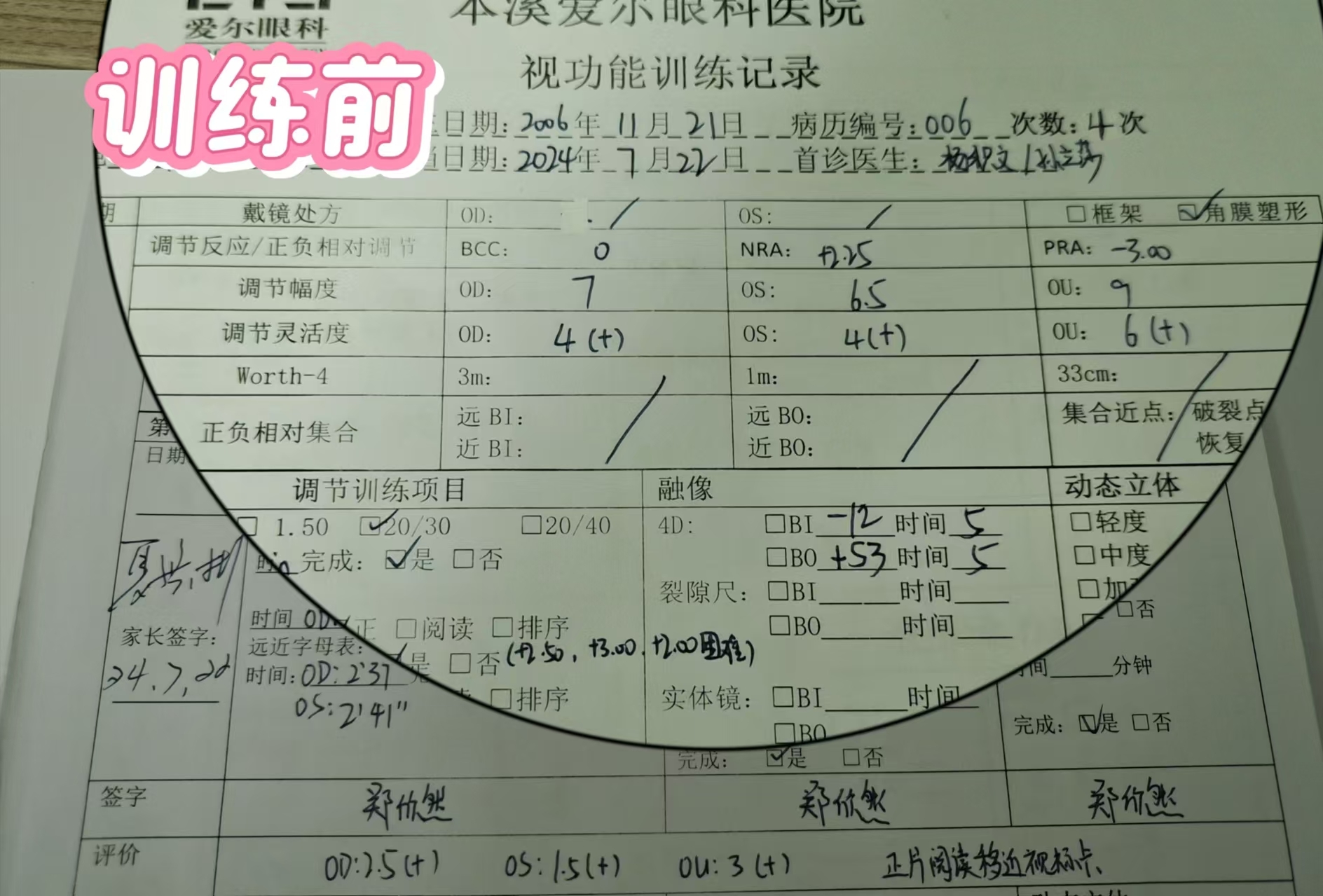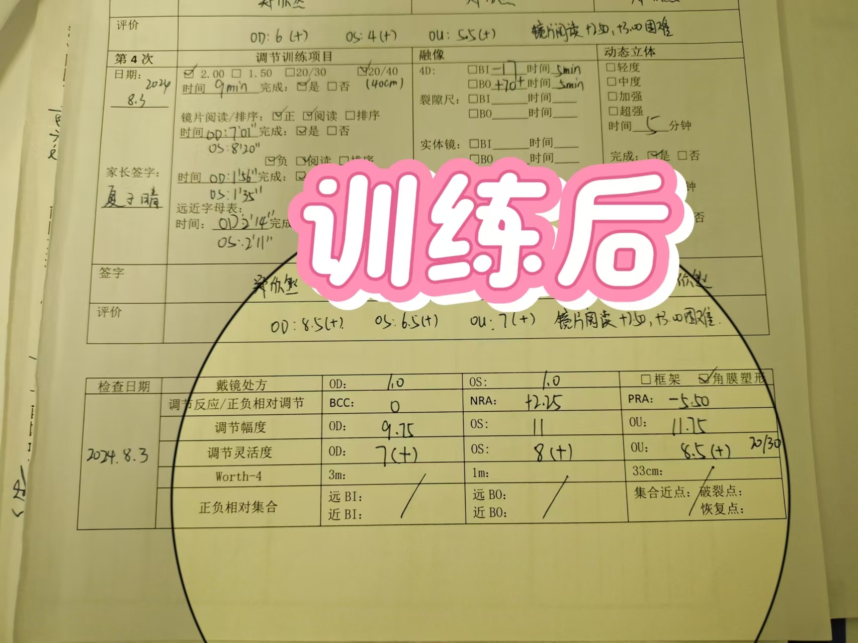 經(jīng)過到院四次訓(xùn)練,調(diào)節(jié)幅度和靈活度有明顯提高,視物不清癥狀消失。